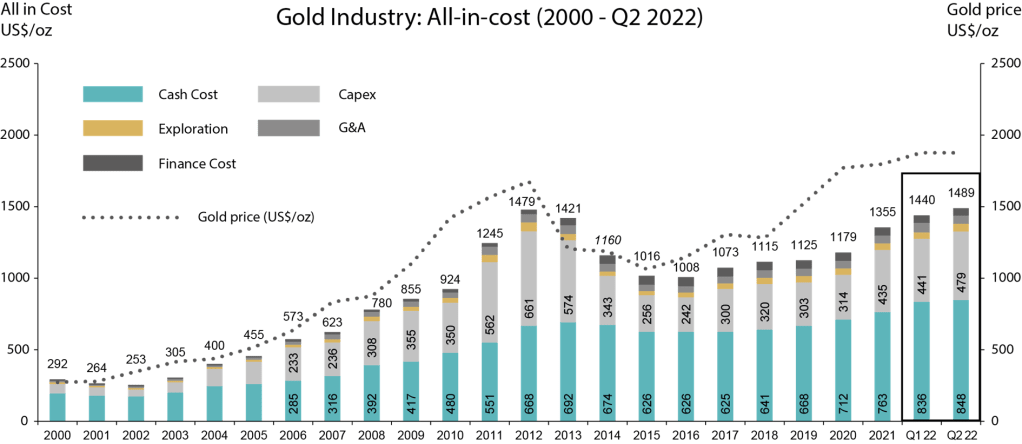 2000 de 300 Usd olan AISC (üretim maliyeti) 2022 de 1232 usd 2023 eylül ayı itibari 1358 Amerikan dolarına yükseldiği görünüyor. İlginç tarafı çoğunun görüşü enflasyondan ve pandemiden kaynaklı olmadığını üretim maliyetlerinin artışına dikkat çekiyorlar.