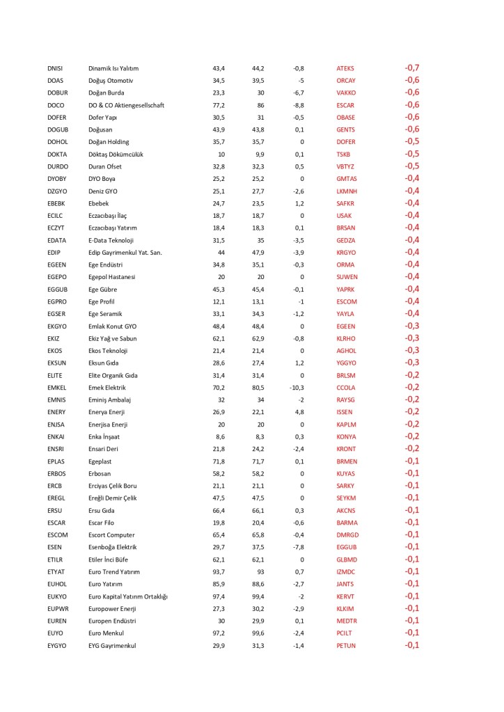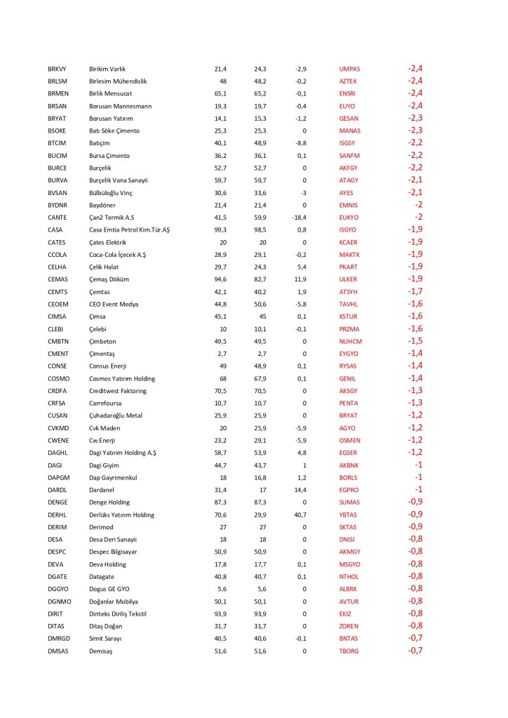 Alfabetik olarak sıralanan şirketlerin Şubat 2024 yılında yayımladığım yazının devamında bugün itibari ile değişimini listesi aşağıda bulunuyor. Tablo yanında kırmızı olanlar azalanlar mavi olanlar artanlar . değişmeyenler ise renksiz olarak kalmıştır.